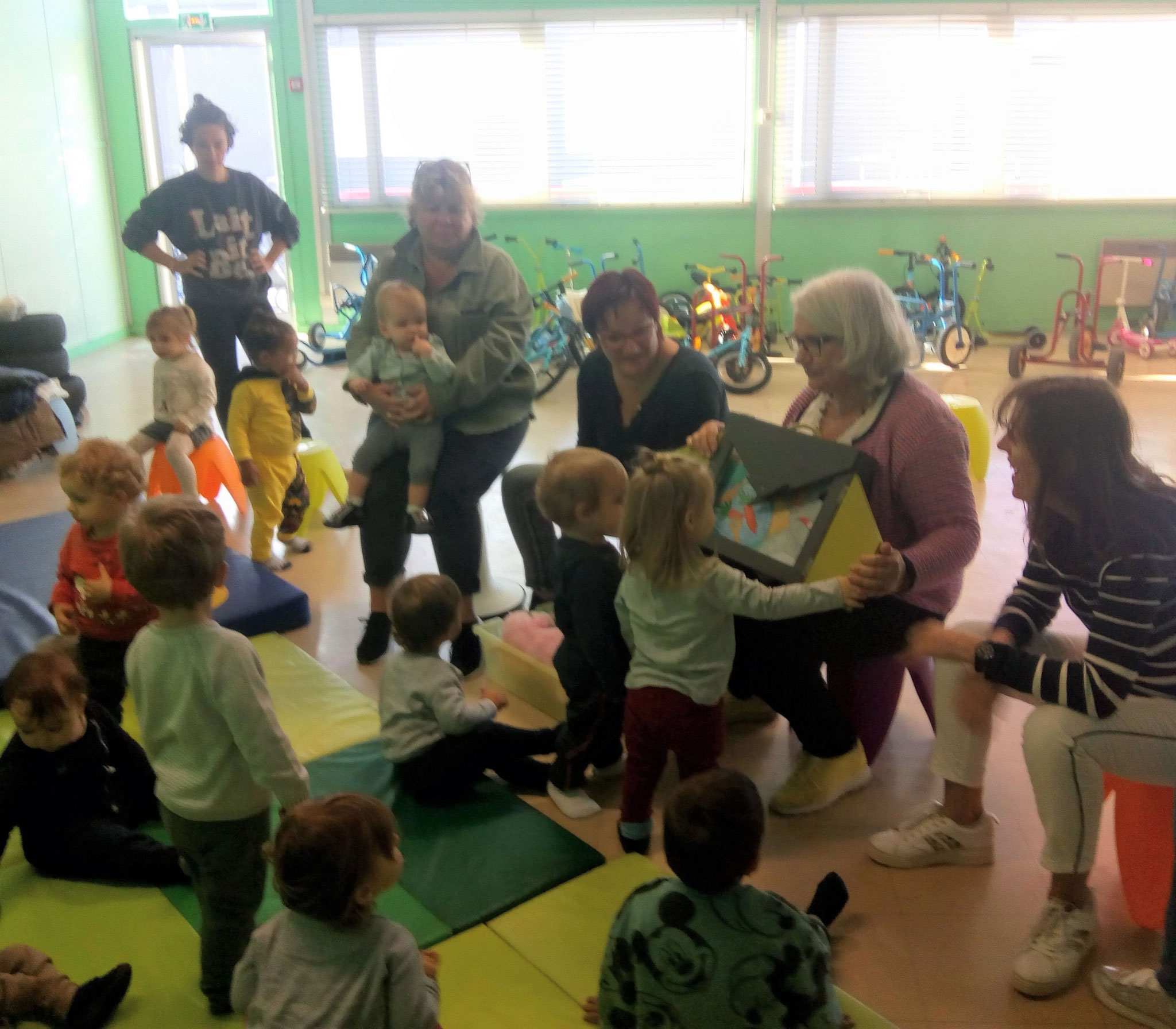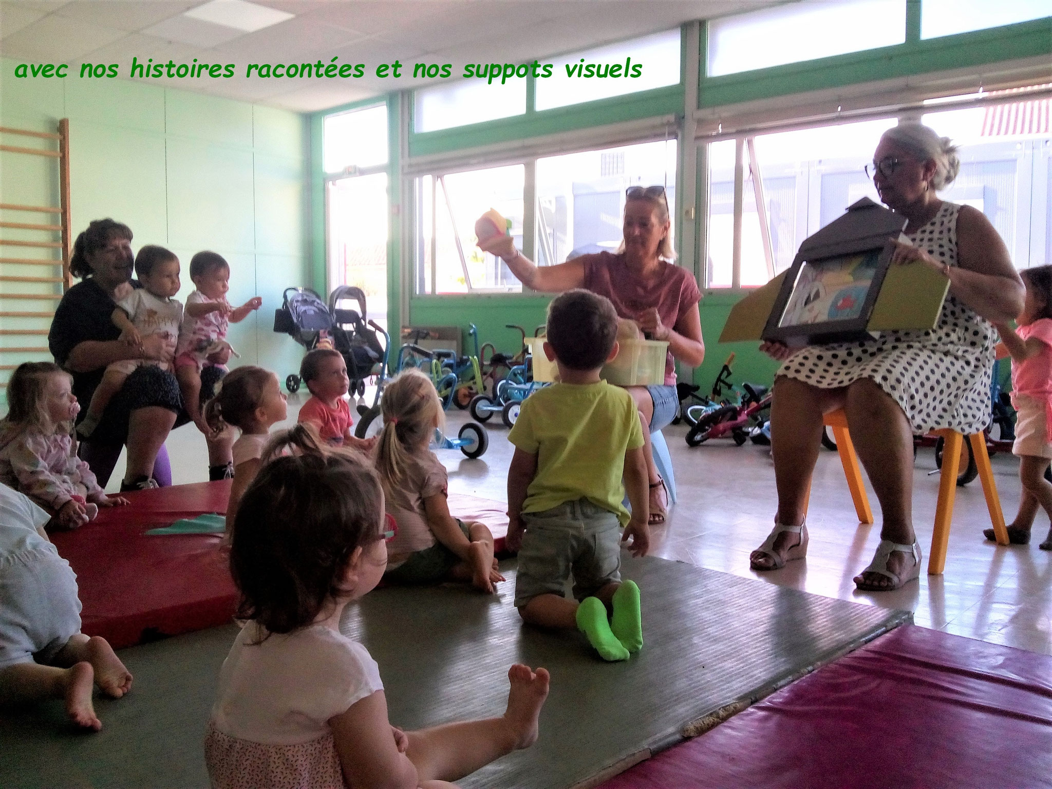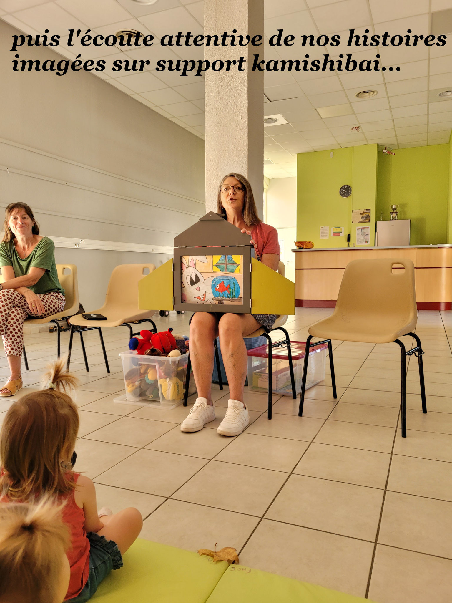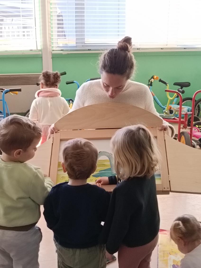 *Chansons à gestes et comptines choisies par les enfants avec nos supports peluches mais aussi petites histoires créées et imagées avec le Kamishibaï, rondes et danses, animent nos séances hebdomadaires grâce aux compétences partagées et au dévouement collectif et ce pour le plus grand bonheur des petits Crau'mignons !
